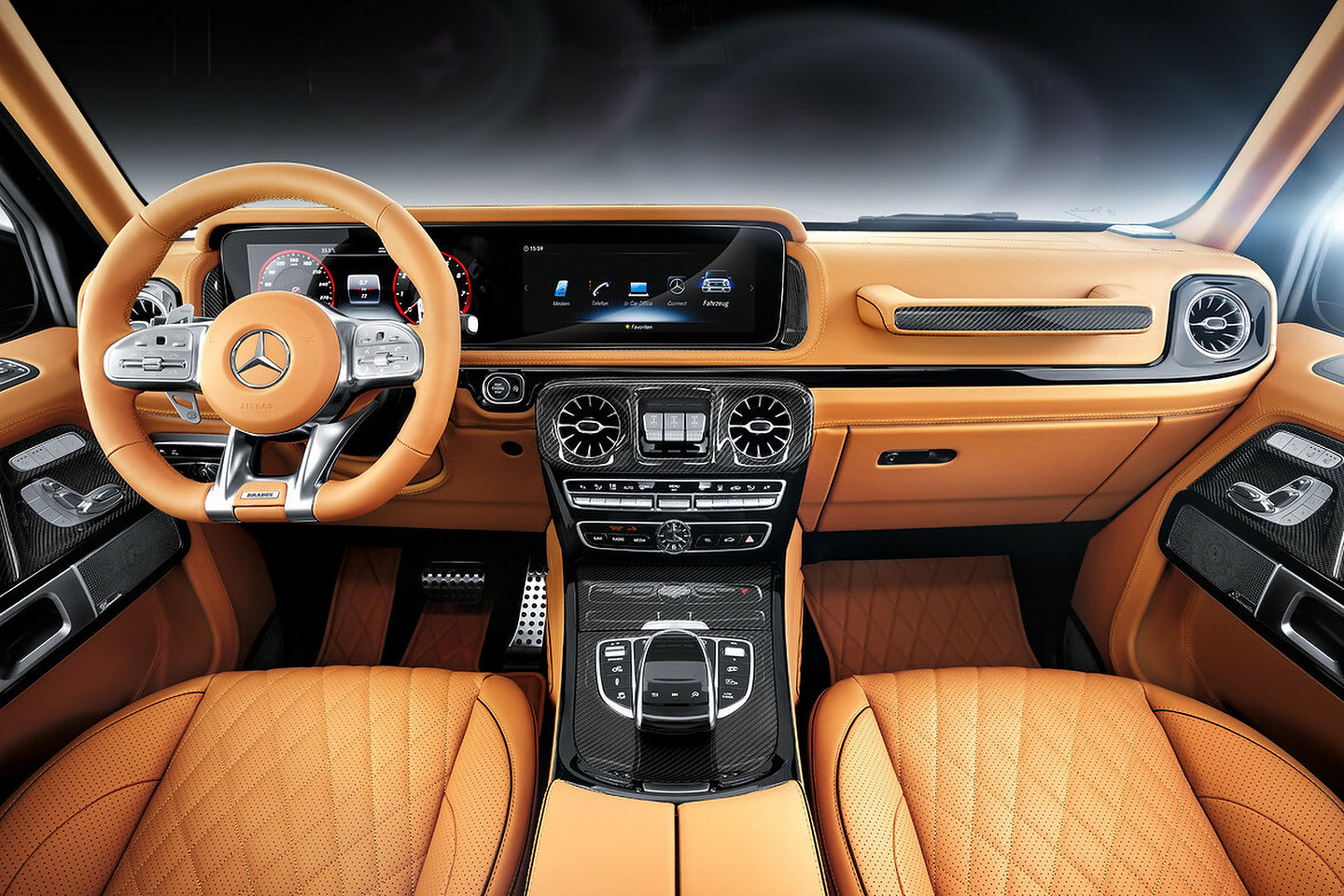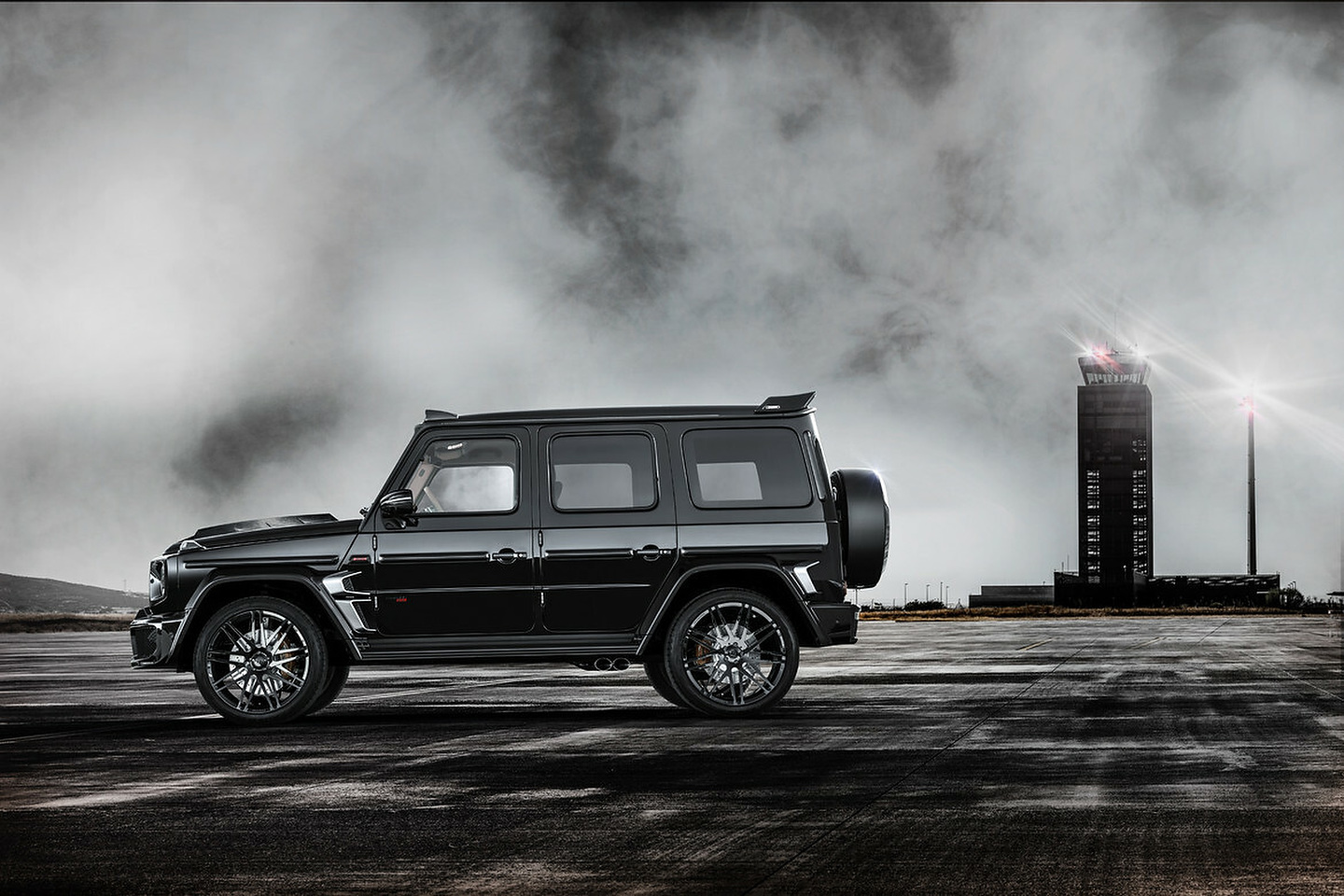Au-delà de la mécanique, le 800 Widestar est un G 63 qui a passé au tordeur à la « transformer ». Beaucoup de fibre de carbone, des modifications sévères aux arches de roue, qui sont dorénavant illuminées, et un nouveau bouclier qui ajoute des phares D.E.L.. De gigantesques jantes monobloc de 23 pouces servent de chaussures « haute couture » à ce VUS d’exception. L’échappement qui sort juste devant la roue arrière comprend deux modes qui peuvent être sélectionnés électroniquement depuis l’habitacle, soit un mode silencieux et un monde où l’on entend toute la sonorité de la motorisation survitaminée (notez que les voisins l’entendront également!)