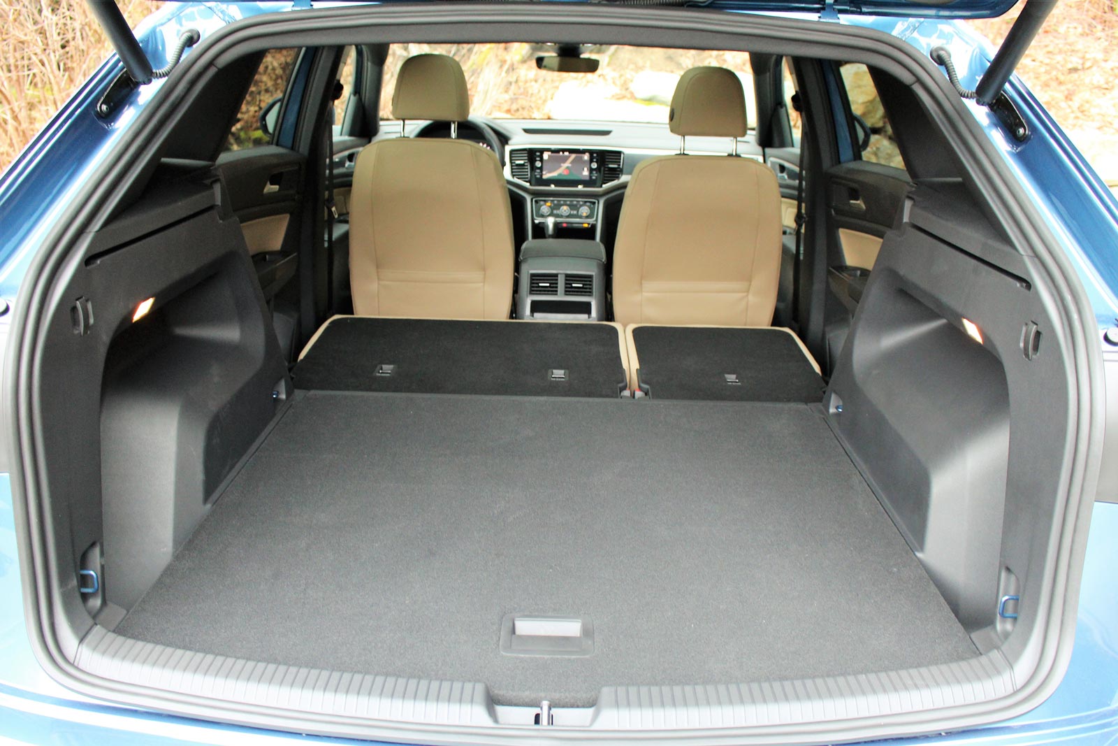 Le Volkswagen Atlas Cross Sport 2020 est plus court de 59 mm que l’Atlas 2021 à trois rangées – dont les pare-chocs redessinés ajoutent quelque 75 mm à la longueur hors tout au VUS par rapport au millésime 2020. Toutefois, les deux reposent sur le même empattement, et le Cross Sport propose une aire de chargement très logeable, avec un volume de 1 141 litres lorsque les places arrière sont occupées, et 2 203 litres avec les dossiers rabattus. C’est plus que dans la plupart des rivaux mentionnés plus tôt, similaire à ce que l’on trouve dans l’Acadia, mais moins que dans le caverneux Passport.