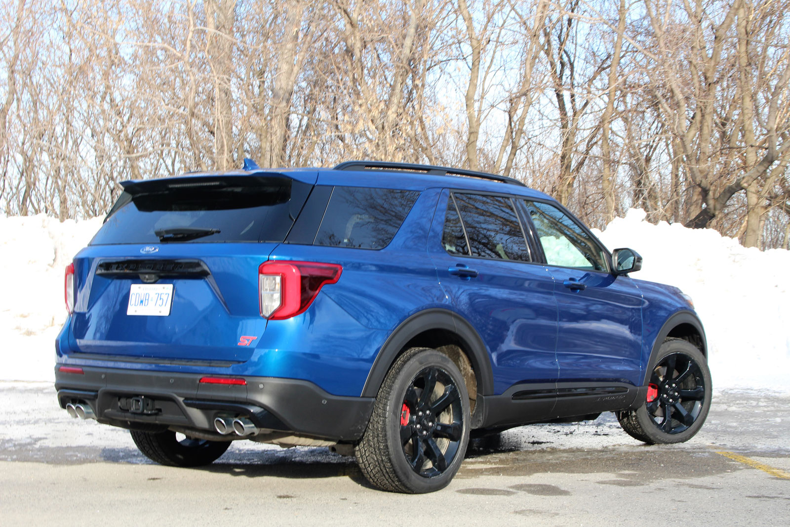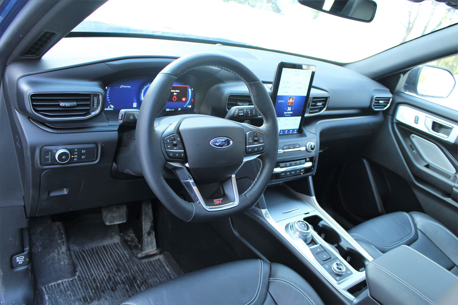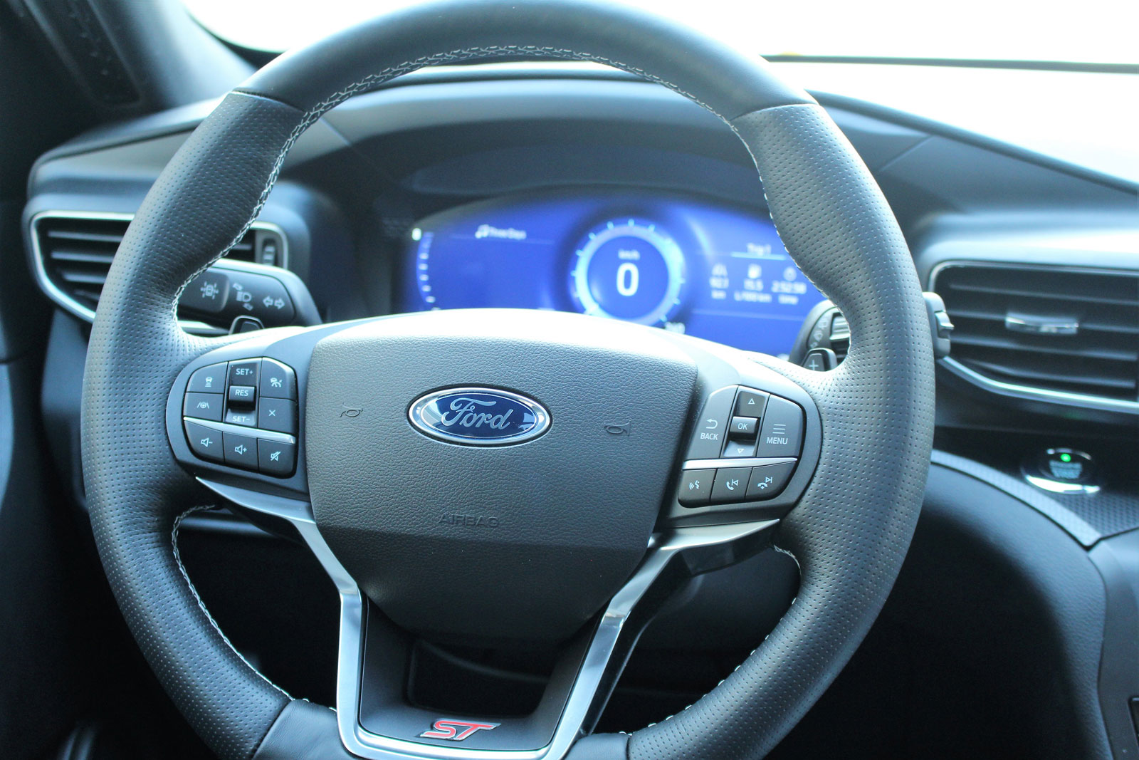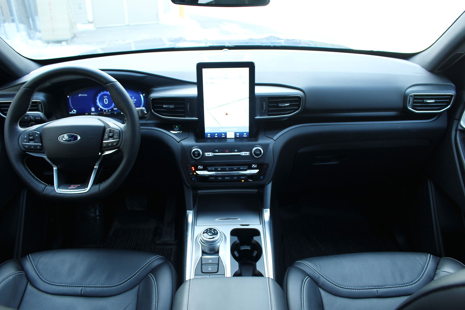 Jusque-là, pas si mal. La version ST démontre sa personnalité avec un habillage noir comprenant les contours d’ailes et de fenêtres, la grille de calandre, les bas de caisse et les jantes en alliage. Elle se distingue beaucoup plus des autres déclinaisons que l’Explorer Sport de l’an dernier, et en constatant le nombre de ST sur les routes, il faut admettre qu’elle séduit beaucoup d’acheteurs.