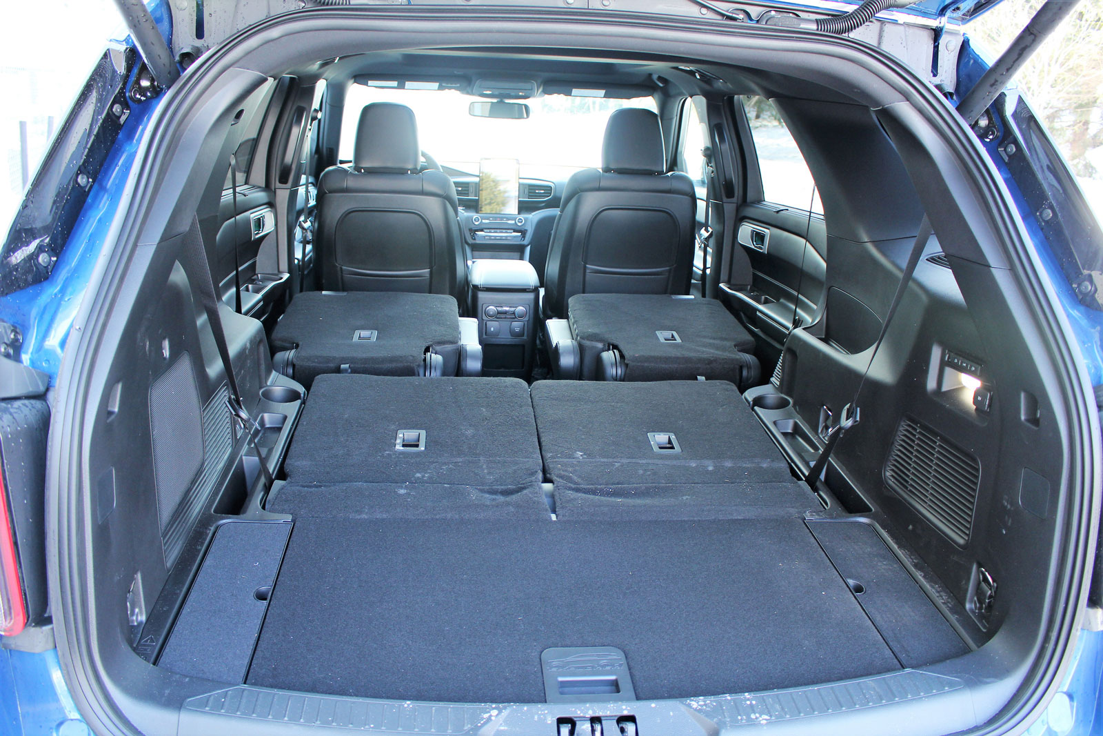 En ce qui concerne l’aire de chargement, on note des gains substantiels en volume, mais seulement lorsque la banquette de troisième rangée est abaissée, et la capacité de remorquage est en hausse aussi, s’élevant à 2 540 kilogrammes (5 600 livres) pour le Ford Explorer ST 2020.
