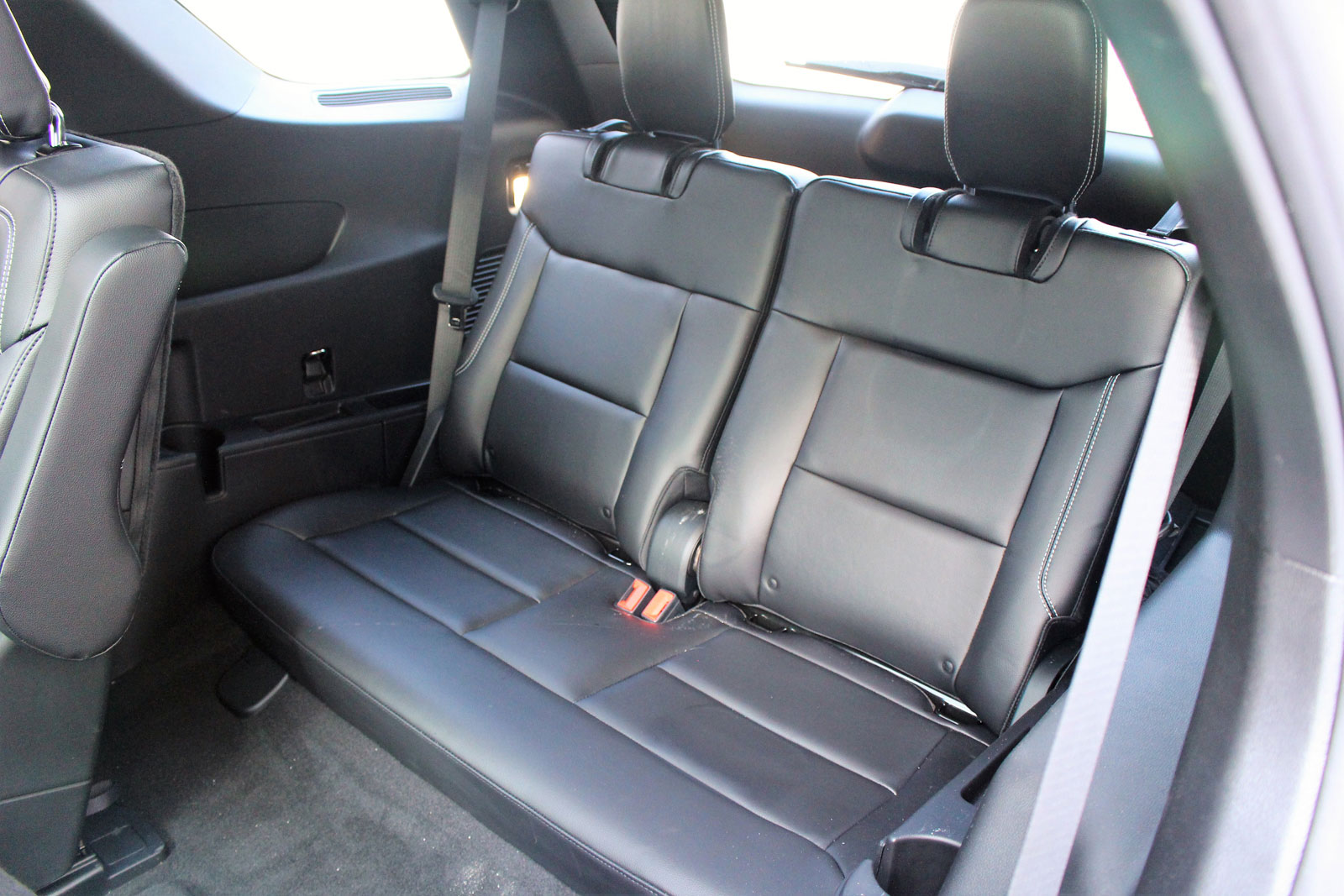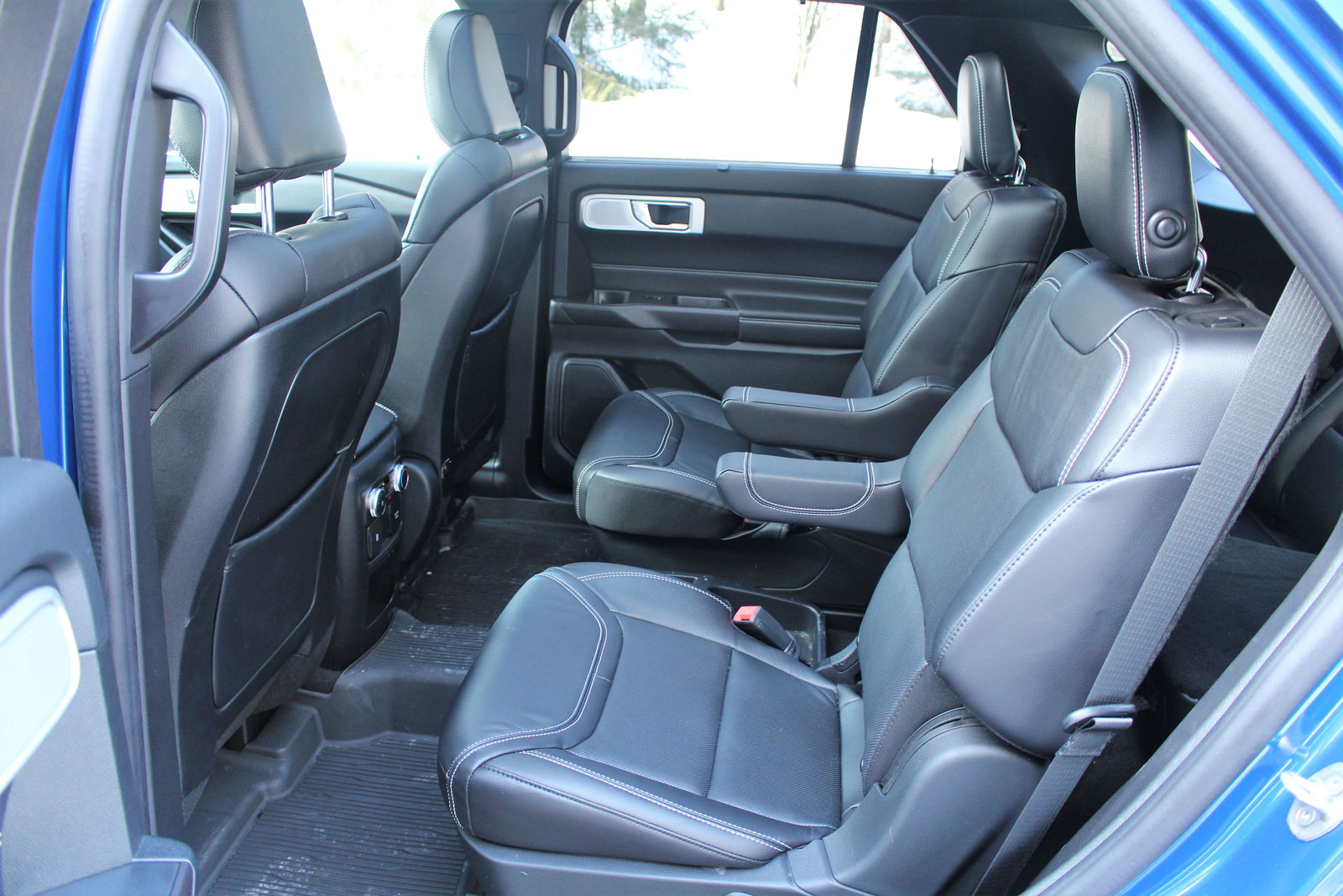 D’abord, le nouvel Explorer repose sur un empattement allongé de 159 millimètres par rapport à celui de la génération précédente, mais ses dimensions extérieures n’ont guère changé. On s’attendrait donc à un habitacle plus spacieux, et curieusement, ce n’est pas nécessairement le cas. Le dégagement pour la tête à l’avant est en baisse tout en étant en hausse pour les occupants de la troisième rangée. Les passagers de la deuxième rangée obtiennent légèrement moins d’espace pour les jambes, mais tout le monde profite de plus de dégagement pour les épaules et les hanches.